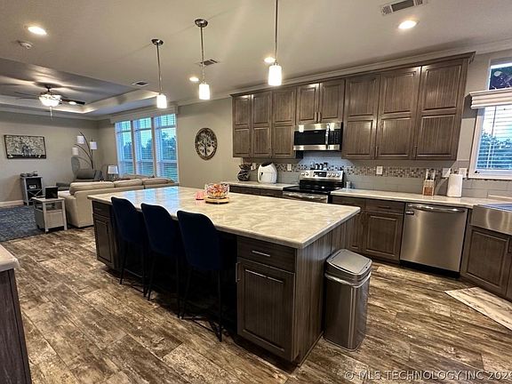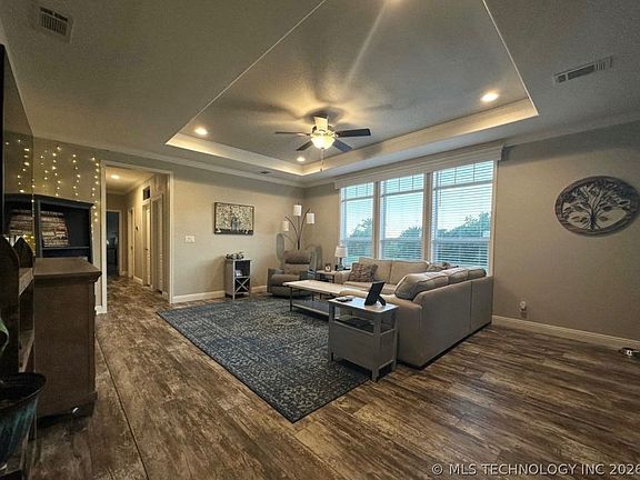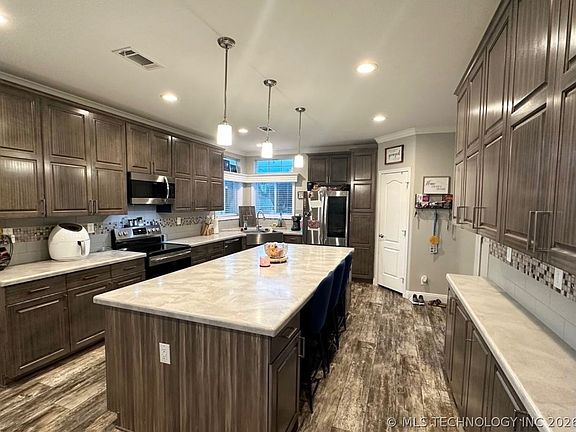 Beautiful 4-bedroom, 2.5-bath manufactured home situated on 10 acres in a peaceful rural setting. Built in 2020 and permanently affixed, this well-maintained home is ready for all loan types. The open-concept layout features a spacious living area flowing into a large kitchen with Corian countertops and an oversized island—ideal for entertaining. A separate dining room and dedicated laundry room add everyday convenience.