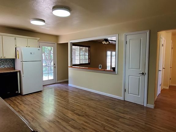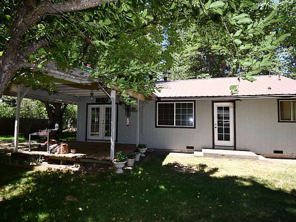 Your private oasis in the middle of town! 3BR/2BA very spacious home with laminate and carpet, wood stove, open floor plan with windows all around surrounded by lush green grass, beautiful shade trees, garden area and very cool wood fired hot tub and covered deck with attached two car garage... this is a unique home set off the street to feel very private and secluded. Plenty of closets and storage.
