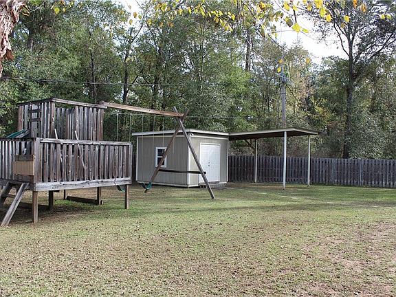 hers has a vanity with mirror. A bonus room is attached to the master bedroom suite. Bedrooms 2 & 3 also have custom built cabinets also. The kitchen and bathrooms have granite throughout. The majority of flooring is scratch and waterproof laminate wood which works great for pets. The home has a built storage shed with overhang for boat storage. Back yard is completely fenced in with a nice patio area. The large double garage has shelving for storage. Call agent for more details.