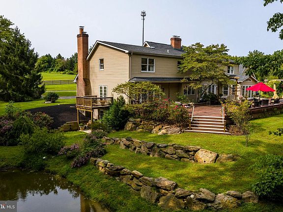 Comfortable Custom-built, Great Access Hard to beat this location abutting Fair Hill State Park and thousands of acres of open space in Cecil County, Md. Spacious custom-built Cape-style house on 19 acres, beautifully planted, protected by open space, ideal for horses. House is unique, custom built in 1989 with high ceilings throughout first floor; open foyer, sweeping staircase to second floor. Library with FP, beautiful wood-beamed ceiling, and fresh wall-to-wall carpet. Living room with 11 foot ceilings and wood-burning fireplace, dining room. First floor MBR en suite with private deck; kitchen with custom cherry cabinets, includes Wolf microwave, Subzero refrigerator, propane gas stove, granite countertop island; family room off kitchen with FP and wet bar; mud room, first floor laundry room, powder room off kitchen leading to large well-finished 3 bay garage with equine storage area, and ample closet space. Family room, kitchen, MBR all have French doors leading to expansive outdoor deck overlooking beautiful pond, gardens and woods. Second floor has 3 BRs, one very large full hall bath, Jack-&-Jill bath between second and third BRs; small office space potential or record storage, full attic space above garage. Finished basement with wood-burning stove and real wood paneling, outside exit through French doors, another finished room would make an excellent office; basement utilities room, 2-zone heating and central air throughout, water conditioner, and crawl space with SilverGlo wall space insulation, sump pump, and built in dehumidifier. Roof redone in 2010. Part of HOA with two neighboring properties, which only applies to the houses, not the farmland. A highlight of the property is its proximity to walking, biking, and riding trails with Fair Hill Equestrian Center to the west, and White Clay Creek Preserve to the north. Grounds with mature landscaping boasts continual in-season blooming, pond, woods with stream running through it. 19 acres is two parcels: house on 2-plus acres, 17 acres of farmland used for horses, and hayed by local Amish farmer. Equipment shed with 6 bays; small barn with stall, tack room, and run-in shed. Has two fenced paddocks. Two extra wood structures on property. Could be torn down or remodeled. Overall lots of possibilities. Unique location and setting with similar types of properties nearby. Close to Univ. of Del., Newark, I-95. Great location. One owner.