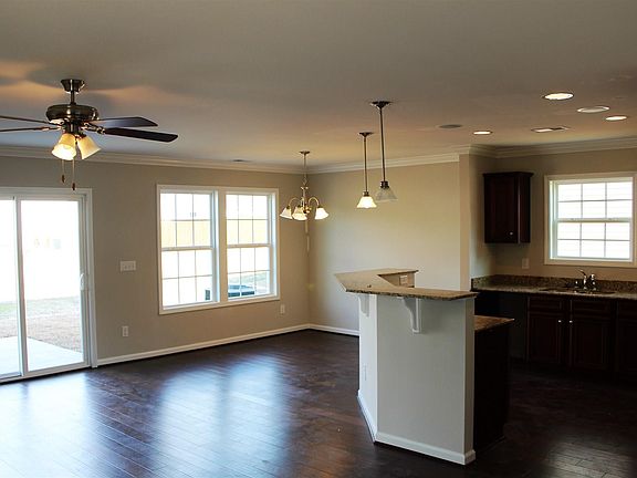 - RoomKitchenFeatures: Granite Counters, Kitchen Island, Pantry, Recessed Lighting, Cabinets-Stained, Floors-Laminate