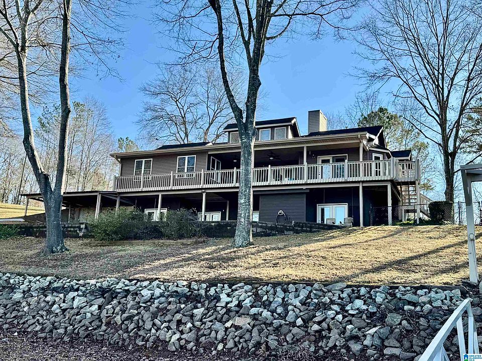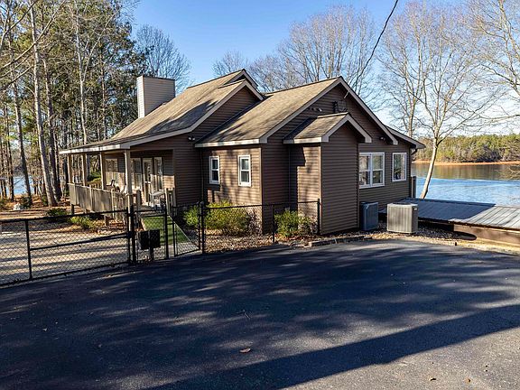 Lakefront Living at Its Best! This stunning lake home is nestled at the end of a quiet cul-de-sac, featuring 128 feet of year-round water frontage and wide water views. With a gentle slope to the water's edge, you'll enjoy a charming gazebo and a two-slip aluminum-covered dock, perfect for relaxing and entertaining on Lake Wedowee. Step inside to discover an open floor plan, highlighted by a spacious family room with cathedral ceilings and a cozy fireplace with gas logs. The kitchen is fully equipped with all appliances, a breakfast bar, and a dining area. The main level offers two master bedrooms, each with its own ensuite bathroom, as well as a convenient laundry room. The finished basement provides additional living space, including two more bedrooms, a full bath, and a den—perfect for a growing family or weekend getaways. Enjoy breathtaking water views from every room in the home, along with covered porches, a fenced yard, and more. This home is truly a must-see!