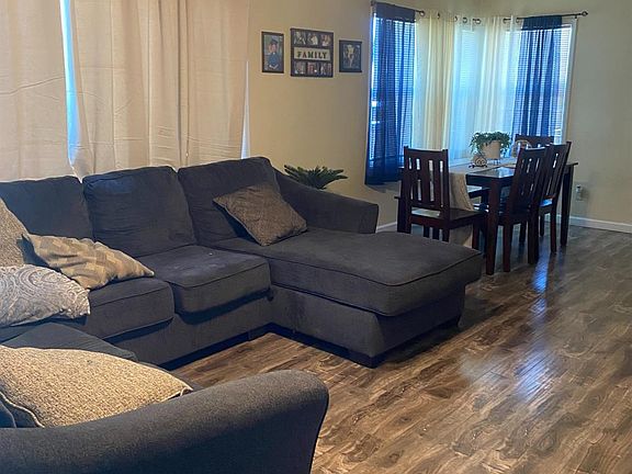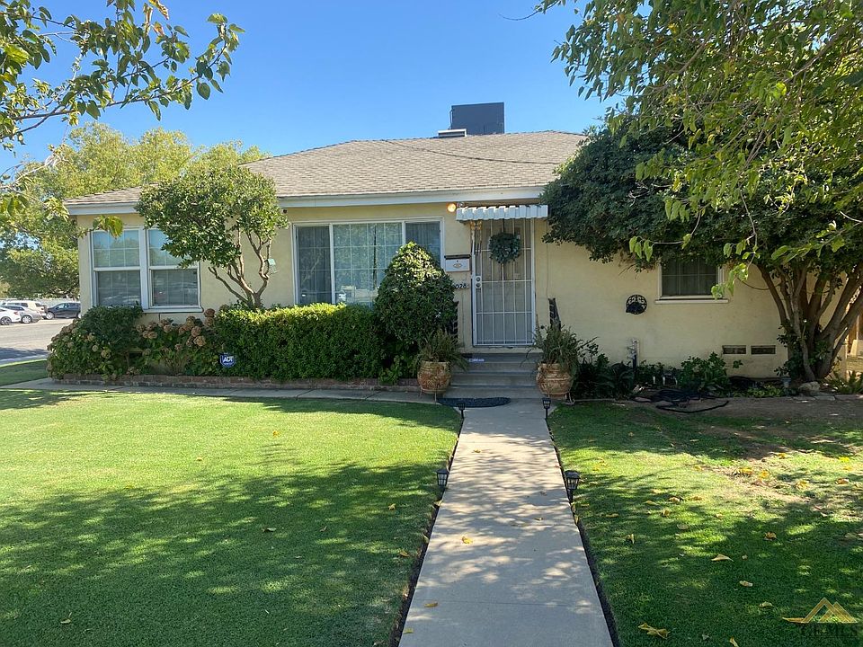 Sweet home includes 3 bedrooms, 1.75 baths, living room, dining, den w/gas fireplace. Kitchen w/white cabinets and eating area, new flooring, comp. roof, huge covered patio, large corner lot, duel, pane windows. NEWER AC AND HEATING unit. Don't miss out on this