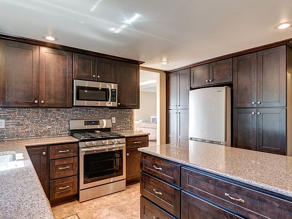 Come see this beautiful, fully remodeled home. Features a gourmet kitchen with quartz counters and island, upgraded soft close cabinets and a glass tile backsplash W/ SS appliances. Open and flowing floor plan downstairs w/ a wood burning fireplace in the front room and a newer gas insert in the family room. Thick pile carpet throughout w/ thick padding that makes you want to take your shoes off. French doors open to a large covered porch and a large fenced yard. Not a drive by! Must see inside!