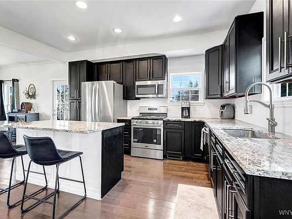 Welcome home to this large renovated home with all the classic charm and modern comforts! Open front porch makes a perfect place for a morning cup of coffee or just to watch the clouds roll by. Large double doors enter into a wide open floor plan, allowing for an easy comfortable flow to the entire first floor. Open kitchen offers beautiful modern look with granite counter tops, newer appliances, and large island, perfect for meal prep or just gathering. Bonus room/family room on the first floor has endless potential for many uses, and has a half bath for added convenience. Upstairs has 3 generous bedrooms. Primary suite boasts a walk through closet into a large private full bath. The 2 other bedrooms share a Jack and Jill closet. Walk-up full attic for endless amounts of storage space. Full basement, with secondary egress bilco doors, adds even more storage space or could be finished to add recreational living space. Grand back deck and patio for full enjoyment of those warm days. Large private back yard with a designated fire pit area to take full advantage of summertime relaxation! Bring your personal touches, and make this house your home! Don’t miss out on this Southtowns gem!