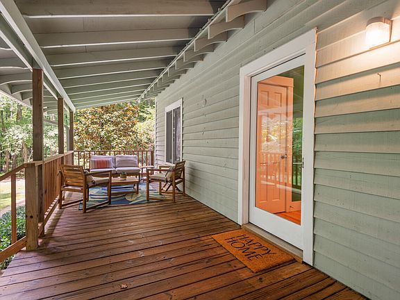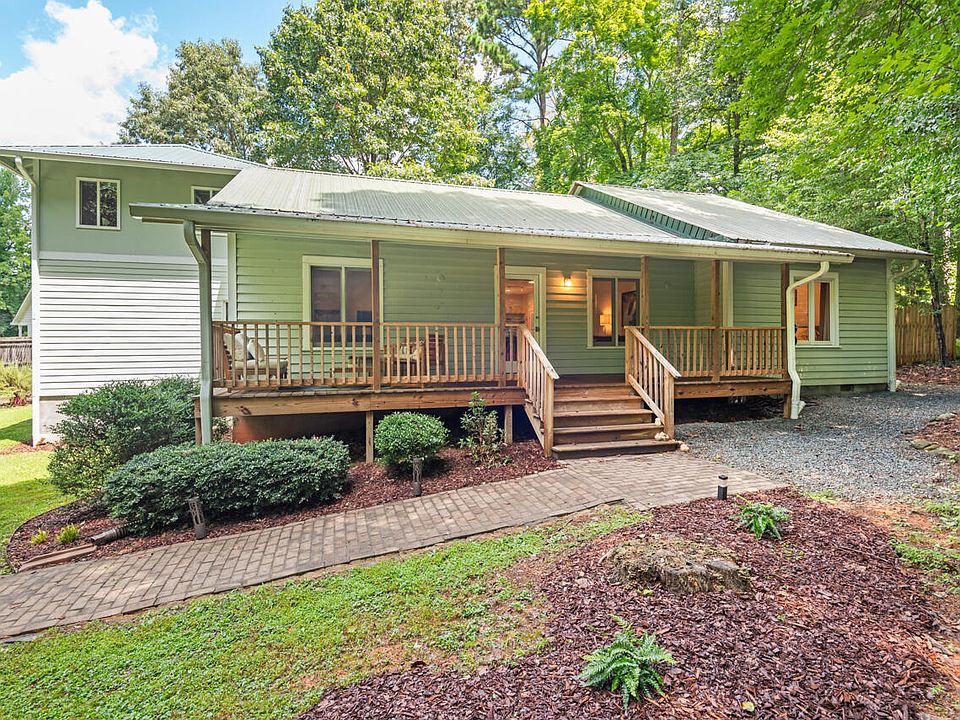 If the market hasn't yet presented the home you hoped for, this magical woodland home may just be the missing Link! Within Chapel Hill city limits, this beautifully crafted custom built home is a quiet oasis you will love to come home to! Wide, rocking chair front porch welcomes you into the gracious heart of the home. Artful craftsmanship you can feel, with details like ash hardwood floors with purple heart inlays, rift sawn white oak in the primary bedroom, minimalist solid moldings, 9 foot ceilings, and recessed lighting. The drool worthy kitchen will have you saying, ''yes chef!''. A clean, yet warm modern aesthetic with solid concrete counters, open wood shelving, custom cabinetry, new LG refrigerator, and new five-burner gas range. Gorgeous modern window is the focal point of the room, offering a view into the beautiful fenced yard. Large primary suite with walk in closet and lovely, white tiled bathroom with soaking tub. Spacious and bright secondary bedrooms have large closets, and a laundry/mud room leads to the backyard. Find the ultimate retreat in the upstairs crow's nest, with windows on all sides, wooden cathedral ceilings, and cork floors. Formerly used as a yoga studio, it is the perfect home office or bonus room! Plenty of storage in the large walk in attic. The backyard is an outdoor lover's delight, with loads of space to host, garden, and play. Enjoy dinner parties on the screened porch, lounging on the large deck, or an Autumn fire by the cozy firepit. Beautiful garden has raised beds with mature compost enriched soil, established herb garden, and a covered potting shed with storage for all of your shovels. Kids will love the custom built treehouse in the wooded front yard, full of shade loving perennials. This solidly built home will give you peace of mind, with features like a long-lasting metal roof, fully sealed crawl space, updated water filtration system, and low maintenance landscaping. Sitting on almost an acre of private land, adjacent to Carolina North Forest, this unique find is perfectly positioned within minutes to the center of Chapel Hill and Carrboro!