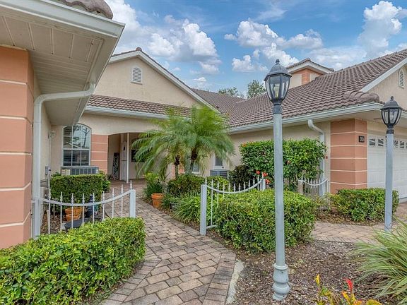 Welcome to this beautifully updated END-UNIT villa located in the gated community of Bobcat Trail, where tranquil surroundings and native Florida wildlife create a peaceful setting. From the private, screened lanai, you can enjoy serene mornings and quiet afternoons in comfort. Inside, the open layout features over 1600 square feet under air, 3 bedrooms, 2 full bathrooms, and an oversized 2 car garage. Recent renovations include luxury vinyl plank flooring throughout, fresh interior paint, plantation shutters, updated lighting and ceiling fans and new interior door hardware. The spacious kitchen is designed with granite countertops, a stylish tile backsplash, modern appliances, a large center island, abundant cabinetry, and a pantry for extra storage. The primary suite includes a generous walk-in closet and a well-appointed bathroom with dual sinks, granite counters, and a walk-in shower. A new roof was installed in 2024, offering added peace of mind. Bobcat Trail is known for its welcoming atmosphere and offers residents access to a community pool as well as a separate private pool reserved exclusively for villa owners, along with tennis and pickleball courts, a fitness center, a small library, and a clubhouse with regularly scheduled social events. Conveniently located just 30 minutes from Gulf Coast beaches and close to shopping, dining, and the Atlanta Braves Spring Training stadium, this home also benefits from being outside the flood zone. The CDD fee is included in the property taxes, and the HOA dues cover exterior maintenance, including the roof. This move-in-ready villa is a fantastic opportunity for comfortable, low-maintenance living in a secure and active community. Schedule your private showing today.