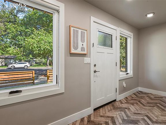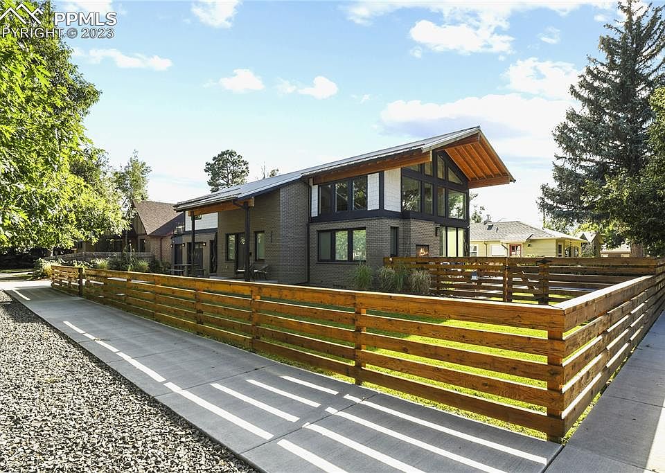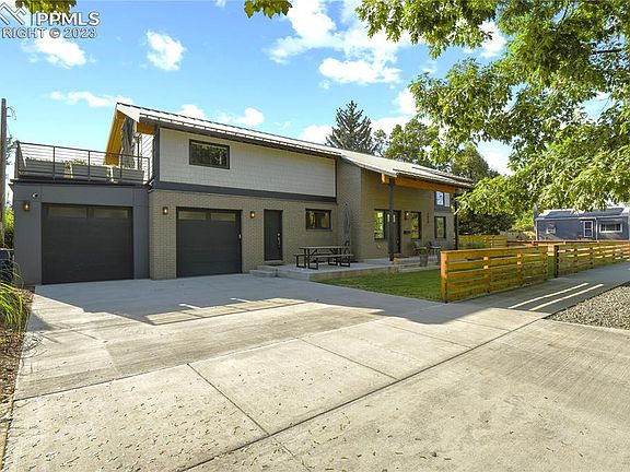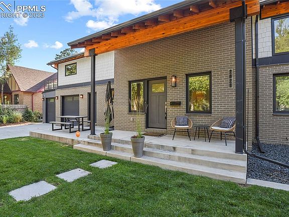 Highly sought after downtown location with all of the new and luxurious amenities of a new home. Complete rebuild in 2017. Stunning home inside and out. Modern design by local architect, Echo Architecture. Great curb appeal, welcoming covered front porch. Inviting entry leads into open main level floor plan with gorgeous gourmet kitchen; Wolf stainless steel appliances, Kohler farmhouse sink, quartz countertop, white soft closing shaker cabinets, and gas range. Beautiful hardwood floors in kitchen, dining, and living room. The living room is the ideal space for relaxing or entertaining; light and bright with an indoor/outdoor double sided gas fireplace. Glass paneled movable wall system brings the outdoors inside; private covered patio with fireplace overlooking fenced yard and raised vegetable garden. Vaulted ceilings with exposed beams and white washed tongue and groove in the living room and upstairs. Up the modern staircase overlooking the living room and elegant light fixtures, you arrive at an office/loft open to below. Upstairs you’ll find the master retreat featuring a spacious bathroom with standalone tub, walk-in shower, and stunning double vanity. Oversized walk-in closet that includes a conveniently located washer/dryer. The large primary suite with reading nook also walks out to private balcony with views of Pikes Peak. Main level also includes a generously sized bedroom and full bathroom. Lower level features a sprawling family room, two additional bedrooms, and a full bathroom. A second set of washer/dryer hook ups in the lower level mechanical room. The home has two furnaces / two AC units providing separate upstairs and downstairs zones, 75G water heater, whole house central vacuum, and many more features. Oversized two-car garage with epoxy coated flooring, workshop space with built-in cabinets. This beautiful home is close to downtown, shopping, restaurants, groceries, golfing, parks/open space.