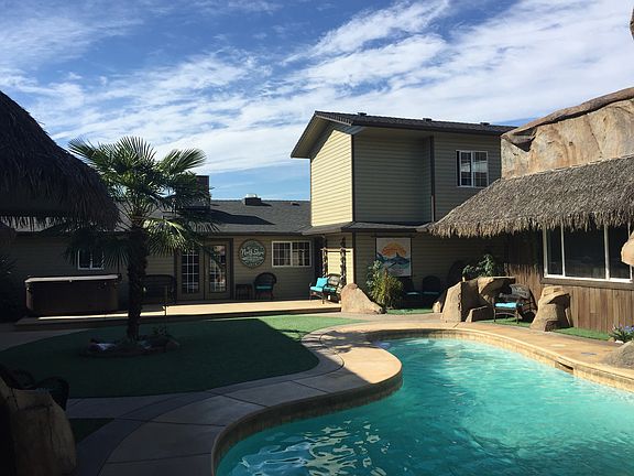 Unbelievable custom property! Attention to detail is unrivaled w/elaborate tiki-bar style sculpted concrete work around the heated in-ground pool, complete w/cascading waterfall. This multi-use property features a remodeled home with granite island kitchen, sunken theater style family rm, custom tiled showers & bonus room for storage in case you fill up the 7000+ sf of insulated shop space! Property is completed paved, offers abundant parking & is zoned MU, an ideal location for your business!