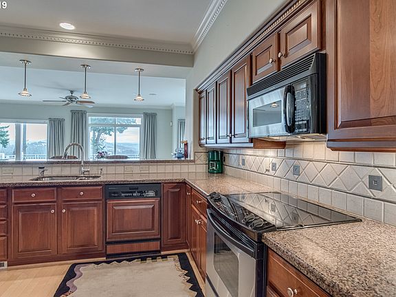 Pristine end-unit townhome w/spectacular Mt Hood & Columbia River views! Exquisite finishes & features. Chef's kitchen w/SS appliances, granite counters, & cherry cabinetry. Family rm w/beautiful built-ins surrounding gas FP & slider to deck w/views. Formal dining w/crown molding & inlayed hardwoods. Vaulted master retreat has walk-in closet, spa-like bath w/jet tub, & private balcony w/views! Quiet neighborhood near top-rated schools.