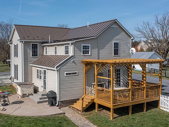 We are proud to present this Circa 1915 Extraordinary 2,100+ Farmhouse GEM! This home will excite the senses of anyone looking for the perfect blend of old and new features in a home. While everything has been tastefully and uniquely up-dated, all of the original doors, doorknobs, random board floors, woodwork and more are still in tact. NEW METAL STANDING SEAM ROOF IN 2022 WITH SNOW BIRDS, GUTTERS AND GUTTER GUARDS ON THE SECOND LEVEL , NEW HEAT PUMP, UP-DATED SEPTIC LINES FROM THE HOUSE TO THE D-BOX, WINDOWS, PELLET STOVE AND SO MUCH MORE.. This is one of the nicest older homes that I have had the privilege of listing. Besides the home being extraordinary, the views of the distant mountains and rolling farmland are also amazing. You will see vistas from every window just about. The front porch is the full width of the home and features 2 custom ceiling fans for those warm summer nights. Upon entering this beauty, you will step into the dining room that has gleaming hardwood floors, a large window, two transom windows and a 3 year old pellet stove that almost heats the home. You'll love the feeling of warmth this home gives you when you enter the living room that also has hardwood floors and a door that will take you to the large and welcoming front porch. Lets go into the kitchen. There is a massive island and every kind of cabinet and shape and size of cabinet to accommodate any kitchen items you have. There are also some glass fronted cupboards as well. The kitchen opens into a quaint den or it could be a perfect breakfast room. Beyond is the deck with a large open pergola where you can hang your plants and enjoy the really cool copper look ceiling fans. Off of the kitchen, is a perfect room that can be used for another den, office or guest room. There is a full bath that is off of this area. There is also a door that leads to a lovely patio and the picket fenced yard. One of the things that I love most about this wonderful home are the three large Magnolia Trees with their glossy leaves and sweet smelling white flowers. Let's go upstairs. The primary bedroom has random board hardwood floors and real steps that lead to an attic that has flooring and 3 new lights installed. The primary bathroom is luxurious and has a whirlpool tub and a separate shower. There are two sinks as well in the vanity. Across from the primary bedroom is another large bedroom with hardwood floors. The upstairs hall bath is amazing. There is a 1/2 bath area on one side of it that features a vanity with a glass vessel sink and toilet. In the middle is a Large shower. From the bedroom suite at the end of the hall there is a door leading to the other 1/2 bath with another toilet and a vanity with a glass vessel sink. The shower I mentioned, in the middle, is shared by both 1/2 baths. Jack and Jill. The bedroom/ office suite with 2 rooms at the end of the hallway is perfect for a bedroom with an office or two offices. This home has it all. FOR THE MECHANIC, WOODWORKER, COLLECTOR, MAN CAVE OR SHE SHACK LOVER, POSSIBLE PERSON NEEDING A STUDIO, THERE IS A 56'LONG BY 20' WIDE BLOCK BUILDING WITH A SEPARATE PANEL BOX, AN OUTLET FOR WELDING AND MORE. THERE IS A 20X25 SECTION WITH A 8X10 OFFICE, A SECOND SECTION THAT IS 20X15 AND A RE-BUILT THIRD SECTION THAT IS 18'6"X 11'6" WITH A GRAVEL FLOOR THAT HAS A LARGE DOOR TO ACCOMODATE A MOWER ETC. THIS BUILDING IS SOMETHING ELSE. THE ROOF IS ARCHITECTURAL, HAS NEWER SHINGLES, THERE IS A FRONT GARAGE DOOR AND THE BEST THING IS THAT IT HAS TWO LARGE ORIGINAL METAL FRAMED WINDOWS WITH MANY SMALL PANES. SOME OF THEM STILL HAVE BLOWN GLASS.. No matter which way you turn, or where you look, this home is about as good as it gets. It is surrounded by history and farmland. It is just minutes to 81and I-66 for commuting and is very close to Strasburg. Strasburg is a bustling large town with so many shops, restaurants and antique shops. Come take a look today before you miss out on this rare offering.