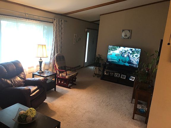 Updates in the last 5 years - kitchen, vinyl siding, windows throughout, steel entry doors, roof, gutters, wall mounted air conditioning unit, water heater, garage door/opener, carpeting and all bathrooms updated. The updated kitchen has new birch cabinets, premium vinyl plank floor, counter tops, dishwasher and a new sink. It includes a gas range, microwave range hood, side by side refrigerator and disposal. The kitchen/dining room has a skylight and a new patio door to a covered porch and new patio area. Large vaulted ceiling living room, 1 & 1/2 baths on the first floor, 3/4 bath/laundry on the lower level. 3 bedrooms on main level. Hot water baseboard heat with separate level programmable thermostats. The lower level has an L-shaped finished family room with a patio door and an unfinished storage/work room. Landscaped corner lot includes a utility shed and a stone patio.