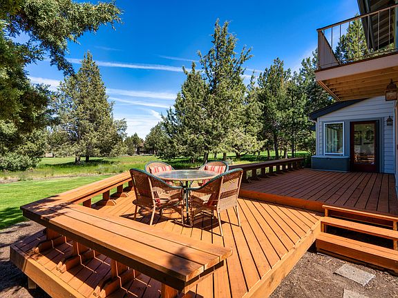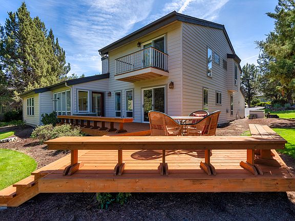 A gem tucked away behind the gates at Eagle Crest Resort. Live like you are on vacation every day! This turn-key, move-in ready home offers 4 bedrooms, 3 baths with 2 primary ensuite bedrooms, one on each level. Travertine tile shower, soak tub & dual vanity custom finishes in the main level mstr. bath. Beautiful alder cabinetry, Corian countertops in kitchen, open floor plan living w/cozy wood burning fireplace & marble surround, vaulted ceilings & 4-seasons sunroom. Set on a large .58 acre lot on the 11th fairway of the resort course, landscaped, timed sprinkler system for easy care, new architectural shingle roof & new rear decks + front walkway. Water & sewer fees are included in HOA fees. Eagle Crest is a premier full service destination resort with 2 championship 18-hole golf courses, 18-hole exec. course, 18-hole putting course, 3 sports centers, pools & spa plus tons of rec. amenities incl. pickleball courts & biking paths only 20 mins to Bend, the high desert, Cascade Mtn Range & Nat'l Forests.