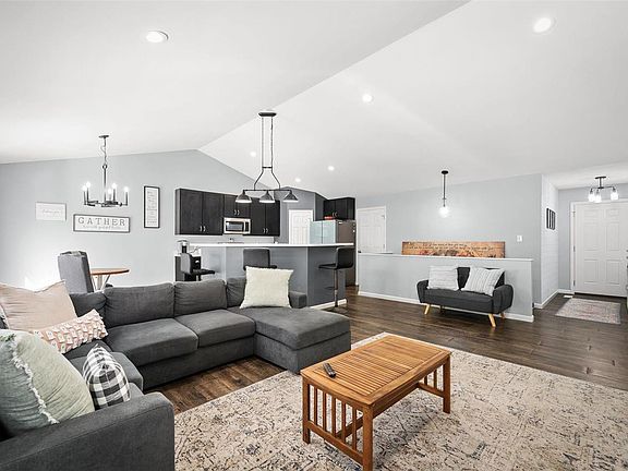 Nestled in a private cul-de-sac, this 3-bed, 2-bath home radiates charm with its open floor plan, vaulted ceilings, and beautiful finishes. The dream kitchen is the heart of the home, featuring 42-inch cabinets, stainless steel appliances, a center island, and breakfast bar—perfect for everyday meals or entertaining guests. The master suite offers a walk-in closet and a spacious ensuite bathroom, providing a serene retreat.