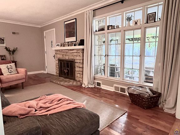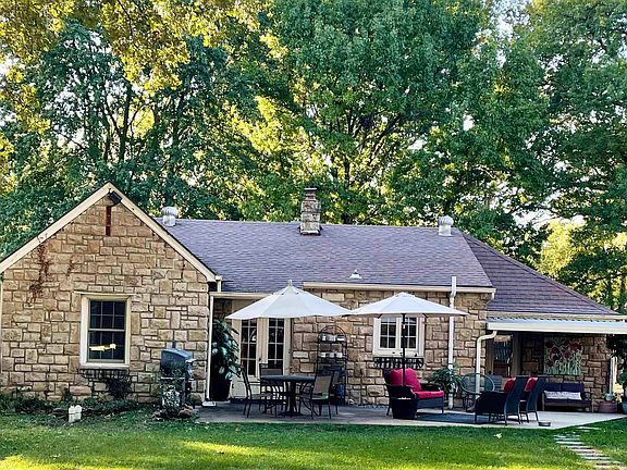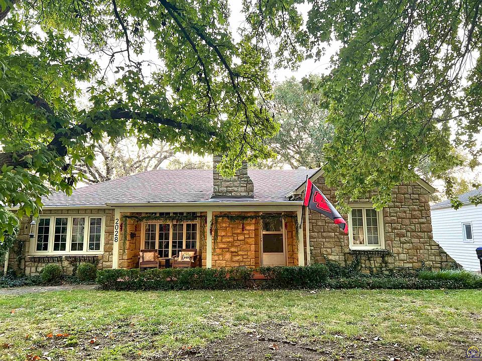 Check out this charming 1940s stone home located just off 21st Street. This ranch-style home offers 1301 sq ft of living space with 2 bedrooms and 1.5 bathrooms, as well as a partially finished 330 sq ft old-world style basement. The basement features a bar, staircase, and closet door that supposedly came from the Jayhawk Tower years ago. In the backyard, there's a 12' X 12' work-from-home office with heat and air that could serve multiple purposes. Additionally, the property includes a 26 X 22 double garage and an iron gate between it and the street. The owners have invested over 50K in remodeling project costs, including new tile floor, carpet, countertops, backsplash, garage siding, plumbing, and interior paint. The home boasts sunny windows, two living room areas, and an adorable kitchen. You can relax on the front covered porch or choose one of the two great options in the back. Don't miss out on this one-of-a-kind property. Won't last long!