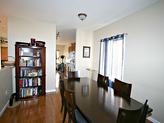 Charming 3 Bedroom 2 Story Home in Spring Creek! Landscaped front yard and covered front porch entry. Gorgeous engineered hardwood floors throughout the main level! Open floor plan design. Formal living room perfect for entertaining! Kitchen features counter bar, oak cabinetry, and eat in breakfast nook! Adjacent family room walks out to wood deck and fenced backyard with detached 2 car garage! Master suite features vaulted ceilings, walk in closet and attached full bath with tub/shower combo! Stunning mountain views in this home! Additional property amenities include central A/C, auto sprinkler system, security system available, and lined crawlspace for plenty of storage! Schedule a time to see this one today before it's gone!