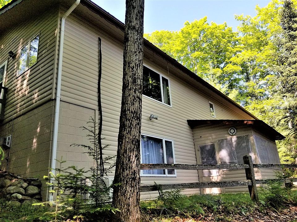 SPIDER LAKE Location! Location! End of Road Privacy and Towering view of Spider Lake! This neat & clean 2 br, 1.5 bath year round home has open living, dining, kitchen, 2 main level bedrooms and 1.5 baths. Kitchen has stainless steel stove, refrigerator, dishwasher & microwave. Living room with wall air conditioner, Bathroom with washer/dryer unit for easy laundry needs. Full basement has large rec room, nice view of lake, free-standing gas fireplace, patio doors that lead to lakeside 13x9 screened porch and easy access to the stairs leading to Spider Lake. Also has a huge storage-workshop area with additional laundry area, generator hook up, work & hobby area, natural gas forced air furnace & wood stove too. Includes attached 2 car garage, pier, blacktop drive & shed. All this sits on 190 ft shoreline & 1.22 acres of land. Great Full Recreation Lake with great musky, walleye, northern, bass & pan fishing and plenty of room for water skiing, pontoon, kayaking fun too!