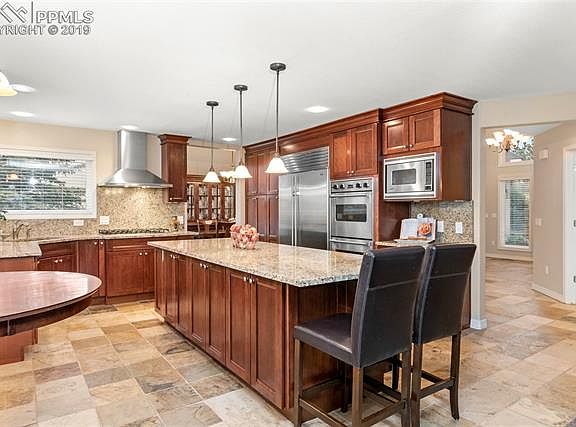 Well kept, extensively upgraded Monument 2-story with walkout basement and quick, easy access to I-25~ Quality hardwood and stone flooring~ Luxury Viking and Sub-Zero stainless steel kitchen appliances, including 6-burner gas cooktop plus instant hot water & undercounter ice maker & beverage cooler~ Granite countertops in kitchen, baths & laundry~ 2 gas log fireplaces~ Vaulted ceilings & several bay windows~Spacious master bedroom suite includes sitting area, 5-pc bath with granite, travertine stone, fireplace & jetted tub ~Bamboo floors & plantation shutters in upper bedrooms~ Central A/C~ 4 bedrooms on upper level ~ 5th bedroom, second family room and office (or den or hobby room) in the daylight basement~ Generous storage spaces ~ Rear deck has a wide view of the front range of the Rockies and is plumbed with gas line for outdoor grill ~ Patio is wired for a hot tub~ 3-car garage includes workbench and storage cabinets~ Nicely landscaped half-acre lot awaits with trees, shrubs, bushes & flowering plants~ Modest annual dues cover neighborhood security service