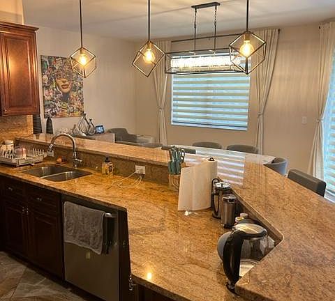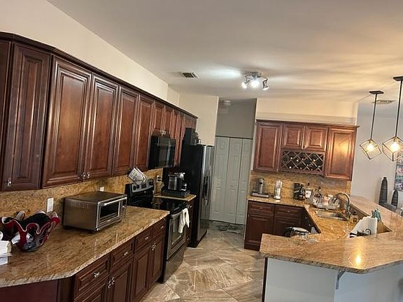 The open-concept kitchen is a chef's dream, showcasing stainless steel appliances, modern cabinetry, and sleek granite countertops. The expansive master suite overlooks the sparkling pool and includes two generous walk-in closets, a spa-inspired bathroom with a walk-in shower, and a separate soaking tub for ultimate relaxation. Down the hall, you'll find a convenient laundry room, a second bedroom with its own walk-in closet, and two additional bedrooms offering plenty of space for family or guests.