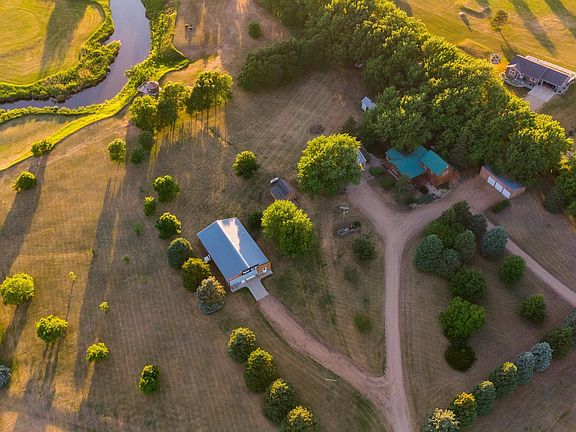 While only located right outside of town, it is very relaxing and peaceful. There are so many great things packed into this property. Not only does the property sit on 10 acres of land but also is right on the golf course. Part of the Six Mile Creek runs through part of the property and beautiful views overlook the golf course. Enjoy a night out at the bin created to capture these views and enjoy. The home has 5 bedrooms and 2 1/2 bathrooms with an all season room! There are 5 buildings located on the property. The building at the south end of the property sits on the commercially zoned area. It was updated in 2015, with around $50,000+ put into it.