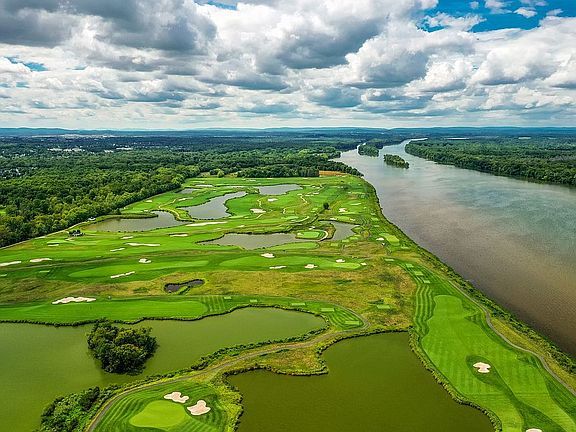 A rare opportunity - this is the home you've been looking for! If you want resort-style living without leaving town, this is the perfect home for you! Located on the Trump National DC Golf Course, this meticulously maintained Lowes Island single-family residence is in the exclusive and highly sought after Cypress Point neighborhood. You will love the spacious layout, almost 5,000 square feet - perfect for family time and entertaining alike. Upgrades and timeless charm throughout include a dramatic spiral staircase, a two-story living room with a step down gas fireplace, a private office/library with an entire wall of floor to ceiling beautifully trimmed shelves to display your book collection and with its French Doors, it is an ideal private space to work from home. A large, separate dining room caters to more formal gatherings while the eat-in kitchen, which opens to the family room with a wood-burning fireplace, is perfect for more casual living. Access from the kitchen to the spacious deck with new awnings is wonderful for for hosting a bbq, or relaxing with a glass of wine and enjoying the views of the 2nd, 3rd, and 5th holes of the Trump National DC Riverview Golf Course as well as picture postcard-worthy sunsets. This home has molding and trim throughout, gleaming hardwood floors across the main level, recessed lighting and built-ins. The kitchen has granite countertops and backsplashes as well as a center island with additional storage. A 48" KitchenAid refrigerator/freezer with a water and ice dispenser, Bosch double oven, cooktop and dishwasher as well as a GE Profile microwave provide a great workspace for the discerning chef. The mudroom, located off the 2 car garage, has upper and lower cabinets for additional storage as well as a utility sink. Upstairs is a luxurious primary suite with a vaulted ceiling and a 2-sided gas fireplace that services the bedroom and bathroom, expansive windows across the entire width of the bedroom and bathroom providing additional views of the golf course, breathtaking sunsets and the Potomac River in the distance. The primary bath features marble floors and countertops with two sinks and ample drawers and cabinetry as well as an oversized jacuzzi and separate stall shower. The large walk-in closet has built-in shelves and there is a separate linen closet. There are three additional bedrooms and a 2nd full bath. The laundry room is conventionally located on the upper level but can be converted into an additional bathroom if desired. From the main level you walk down to the fully finished walk-out lower level rec room which is perfect for entertaining guests, with a granite wet bar and mini refrigerator, full bath, and an additional room you can customize to fit your needs - use as an additional home office, an in-law or au pair suite, game room or exercise room to get your workout in from home! Three specious closets on this level provide substantial storage space. The lower level leads out to a patio which backs to trees, beautiful foliage and is yet another sunset vantage point. This home has an alarm system, an irrigation system, and the HOA includes lawn care, trash/recycling pick-up and snow removal. All window treatments in the home convey. Cypress Point residents have access to community pools, walking and hiking trails, tot lots, parks and the Potomac River. Shopping and restaurants are minutes away. Located just off Algonkian Pkwy, there is easy access to Dulles International Airport, Fairfax County Pkwy, and other major commuter routes. Separate membership packages are available for Trump National DC's two 18-hole golf courses and state-of-the-art tennis courts. Golf carts can be used throughout the neighborhood and to access the Trump National DC Golf and Tennis Club. Enjoy, and welcome home!