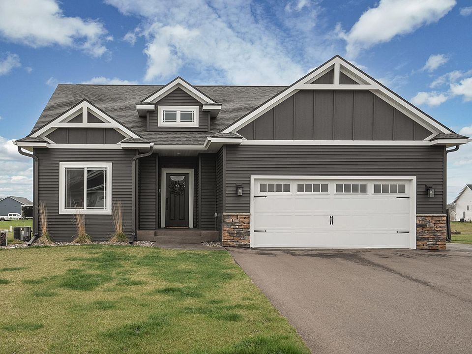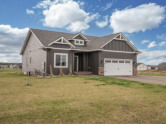 Acreage and newer construction in a great location! Home offers one level living and features open concept main level, gorgeous hardwood floors, and kitchen fit with stainless steel appliances. Huge walk-in pantry adds to generous kitchen space. Main level living room boasts a beautiful shiplap entertainment center and electric fireplace. Spacious owner's suite complete with its own bathroom and walk-in closet. Main level also includes an additional bedroom, full bathroom, and sizable laundry room. The unfinished lower level, fit with egress windows and bathroom plumbing rough-in, is brimming with potential and ready for your finishing touches! Irrigation system has 11 zones and 54 sprinkler heads that cover the entire full acre. Parking pad next to the garage is perfect for an RV, boat, or extra vehicle.