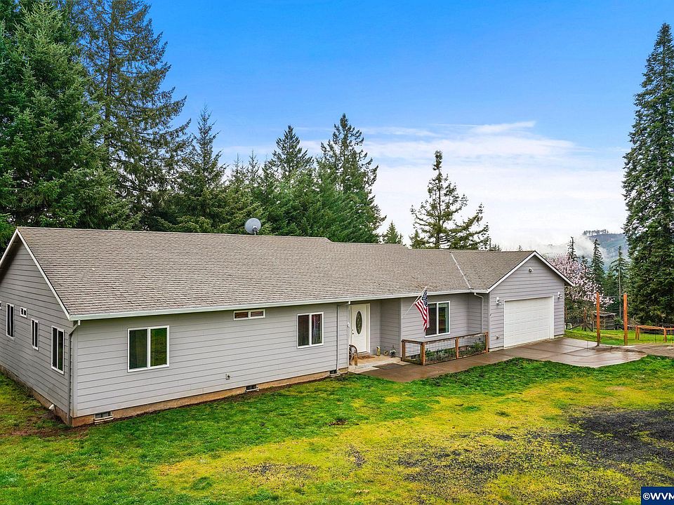Escape to your dream hobby farm in Carlton, Oregon's wine country. Spacious single-level home on 10+ acres with 3 beds, 2 baths, and a 2-car garage with office/studio space. Ample parking, generator plug, fenced corrals, dog run, barn/shop, stalls for horses. Enjoy fruit trees, garden box, and scenic views. Updated interiors, woodstove, en-suite bath. Short drive to wineries and amenities. Make it yours! **Tax deferral and marketable timber, buyer to do due diligence.**