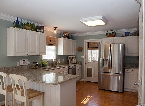 Charming 3 Bedroom 2 Bath Ranch conveniently located only a couple miles from I-77. This home features hardwood floors, granite countertops, vaulted ceilings and a gas fireplace. Large kitchen and dining area with lots of natural light and nearly new french door stainless fridge will stay! Awesome backyard is fenced overlooking a small stream and has a deck and brick patio for entertaining or grilling. Storage building will remain with the property. Better hurry on this one!!