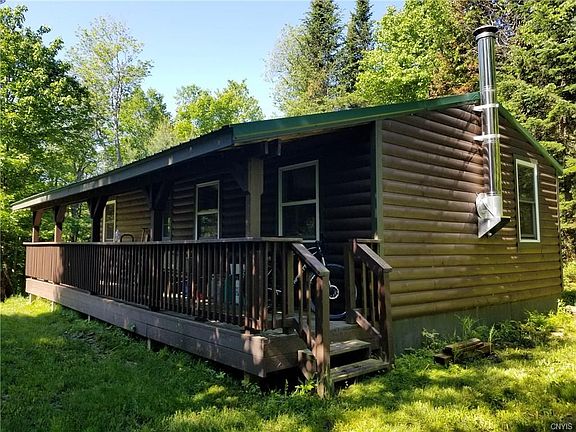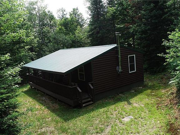 Here's a 2 bedroom cabin located in the heart of snowmobile country, directly on a groomed trail. Cabin is nicely finished inside, with double insulated windows and wood floors. Some furnishings are included. 37 acres of prime hunting ground with deer, turkey, bear, and coyote, with 4 tree stands already in place. This property also adjoins hundreds of acres of state land. There is a decent sized pond on the property, and a small detached garage. Come and take a look today!