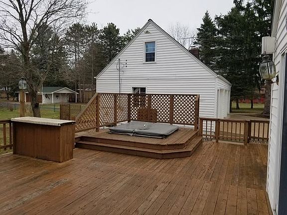 Large family room, 2 main floor bedrooms, hardwood floors, some new paint, back deck with hot tub and sauna, large detached 3 car garage with attic storage and a full basement underneath which at one time was finished off as a mother in law apartment. Currently it's unfinished space. Upstairs loft has a 3/4 bath, hardwood floors and it's own outside entrance, and is being counted as a 3rd bedroom. Last few years the roof, furnace, siding and windows have been updated. Beautiful setting on the tobacco river and a well maintained road. Tax information is both parcels combined. All listing information/measurements are approx