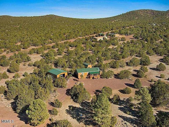 PARADISE by the Ponderosas and Pinons! CHARMING, like-new home in the highly sought after Red Lake Estates on heavily treed one acre corner lot. Sit on the front porch and take in the stunning sunsets, gorgeous MOUNTAIN VIEWS, and endless wildlife. This beautiful ONE-YEAR OLD RETREAT HOME boasts a spacious and cozy living room with a wood stove to keep you warm, open kitchen with island and breakfast bar, a large primary bedroom with en suite bathroom and large second bedroom. Includes a huge 31X24 RV GARAGE, fenced backyard, dog run, AND a workshop/man-cave! Enjoy privacy and tranquility while still close to Williams, Flagstaff, and The Grand Canyon! Be sure to take the VIRTUAL TOUR! This PERFECT DREAM HOME or partially furnished vacation rental can be yours! HURRY this one will go fast!
