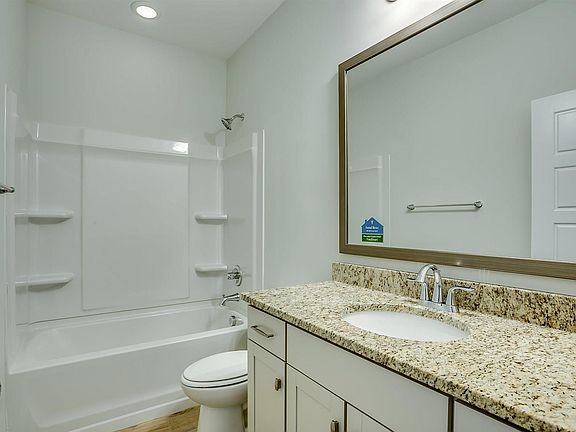 The Allerton is a one-story, Craftsman-style home features three bedrooms and two baths. The kitchen includes a spacious pantry and a large island with bar top which is open to the dining area and family room. The primary suite overlooks the back yard and features a large walk-in closet. This split plan features the secondary bedroom and third bedroom opposite the primary. Options include a fireplace in the family room, walk-in shower in the primary bath, dining area, and outdoor fireplace on the rear covered porch. PHOTOS ARE OF THE SAME FLOOR PLAN & ELEVATION BUT DIFFERENT FEATURES & COLORS & OPTIONS!