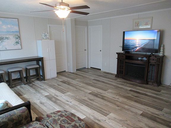 This cute and furnished 2024 mobile home is a place where you can relax and enjoy a coastal retreat. It has vinyl flooring throughout and a metal roof. It is serviced with city water and sewer.