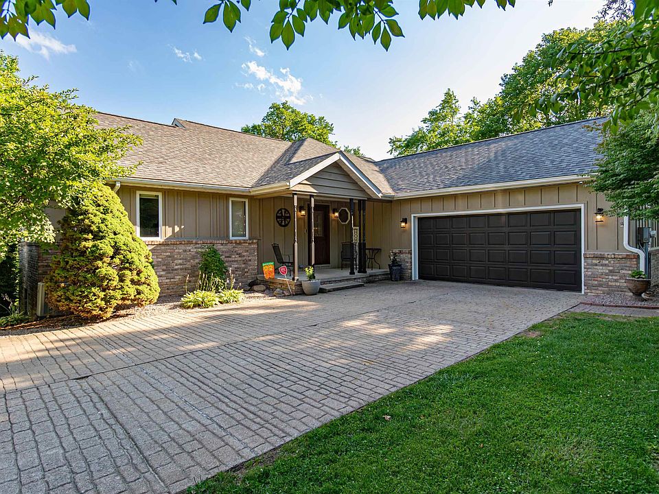 LIVE YOUR BEST LIFE WITH THIS AMAZING HOME WITH BREATHTAKING VIEWS! Private lane welcomes you to this sharp ranch nestled among what most would call a once in a lifetime opportunity.... to live with golf course frontage with 2 ponds and wooded views and can all be viewed from inside with abundance of windows and french doors or the massive 2 tier deck. Dynamic ceilings, abundance of natural light, beautiful brick fireplace and open great room starts this tour off! Sharp kitchen with granite countertops and nice breakfast bar and comes complete with all appliances. Spacious master with abundance of closet space with custom built-ins, remodeled en suite with walk in tile shower and separate soaking tub. Recently remodeled full walk out basement feels like main floor living and offers an abundance of natural light with 2 bedrooms a full bathroom and nice wet bar area. If that is not enough, Did I mention there is also a hot tub and fire-pit area....ENTERTAINING at its finest! Golf cart community and just a short distance to the golf course club house to golf, have lunch/dinner or just socialize. Roof, flooring, lighting, bathroom remodels, exterior painting/staining and the list goes on....So many amazing updates, too many to list! Sellers gifting a 1 year home warranty. Outstanding views...Great location...Beautiful landscaping...This Amazing one of a kind house can be your new HOME!
