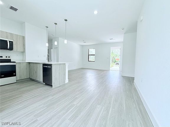 Beautiful Brand New 3 bed / 2 bath home rendered by nature, high ceilings, and huge backyard making it suitable for a variety of lifestyles. This home comes complete with a stainless steel range, microwave, refrigerator and dishwasher + 1 car garage. The three bedrooms provide ample personal space, while the two and a half bathrooms ensure comfort and privacy, including mirrors and sliding glass door. backsplash in the kitchen and more upgrades! STOP RENT and start for a Brand New Home !!! Strategically located, you are only 35 minutes to downtown Fort Myers, excellent schools, shopping and dining options, with convenient access to major highways. visit us TODAY!!! SELLER IS MOTIVATED!!!!
