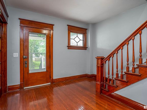 Original woodwork in this 2 story beauty close to St Ambrose University. Kitchen boasts quartz countertops and all stainless steel appliances stay. Beautiful french doors to the living room. Main floor bedroom could be the master with a full bath just steps away, or the fabulous staircase leads to 3 more generous bedrooms and a second full bath. Air conditioning added, electrical panel replaced and mitigated for radon in 2017. If you need more space than the large 2 car garage, you are in luck. There is an attached storage room. This home could be yours. Call today for your appointment.