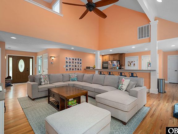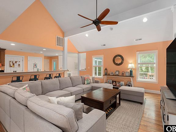 This impressive 2,429 square foot residence offers four spacious bedrooms and three well-appointed bathrooms, providing ample space for family and guests alike. Step inside to discover the thoughtful design, including a convenient first-floor ensuite that's perfect for family members preferring single-level living. The primary bedroom features a generous walk-in closet and updated ensuite with double vanity sinks and a tiled shower. The heart of this home shines with practical amenities, including a huge pantry that would please any chef or grocery enthusiast. There is also a designated office space allowing you to work remotely. There are two generous sized bedrooms on the second level, both with built-in window benches showcasing a sliver of sound view. Enjoy outdoor living with a screened porch and a sun porch perfect for any time of the year. The fenced yard provides security and privacy for children and pets to play freely. Perhaps most appealing is the location within a gated community, offering peace of mind and a sense of belonging. Community amenities include sound access and dock – perfect for launching kayaks, paddleboards, or simply enjoying spectacular sunsets over the water. You're perfectly positioned to enjoy all the Outer Banks has to offer while retreating to your tranquil sanctuary at day's end. With tons of storage throughout, you'll never need to choose between keeping your holiday decorations and your beach gear – there's room for it all in this thoughtfully designed coastal retreat. Come out and take a look today!