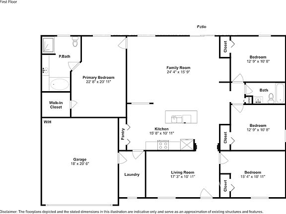 Home Features and Amenities: Air Conditioning, Fenced Yard, Garage, Granite Countertops, Kitchen Island, Long Lease Terms, Luxury Vinyl Plank, Patio, Pet Friendly, Pool, Primary Bedroom on Main, Single Story House, Smart Home, Stainless Steel Appliances, Tile, Walk in Closet, W/D Hookups, and professionally managed by Invitation Homes.
