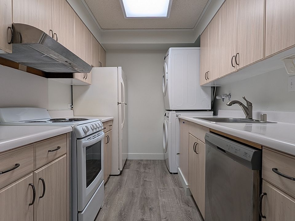 Spacious and freshly painted 1/1 with 1 covered and well-situated reserved parking stall, is available in the Sakura. This clean and bright apartment is conveniently located in Nuuanu, right up the road from Downtown Honolulu, Chinatown, with nearby freeway access. There is newer vinyl plank flooring, and appliances include a range, refrigerator, dishwasher, 2 window air conditioners, ceiling fan, and in-unit front load washing machine and dryer. There is also a storage closet available for tenant use. Water/sewer is included, tenant pays electricity, cable tv/internet. Renters insurance is required, and no pets or smoking is allowed in the unit. **Disclosure...A plumbing replacement project is scheduled for this rental unit between May 26 - June 12, 2026. During this time, occupancy will still be allowed, and plumbing will be restored at the end of each work day, and Landlord shall reimburse Tenant a portion of rent.