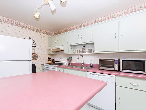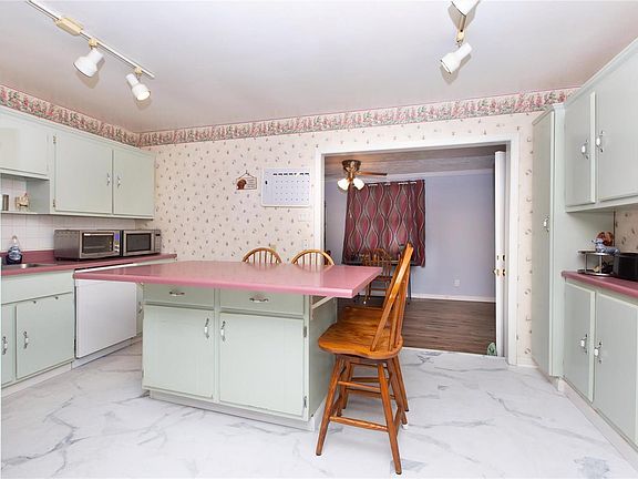 The kitchen boasts ample counter space & built-in pantry cabinets. The adjacent dining area provides a perfect setting for family meals or entertaining guests, with access to the deck & back yard.