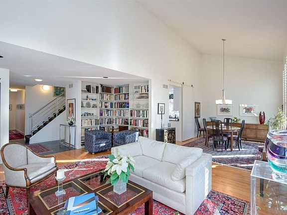- INTERIOR: Wood Floors, Carpet, Ceiling-9+ ft, Tile, Bookcases