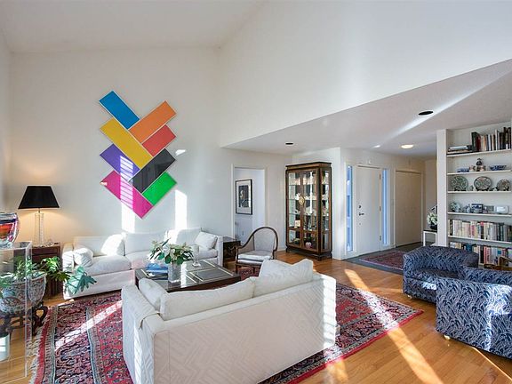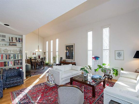 TIMELESS, MODERN DESIGN. Sophisticated two story home enhanced with vaulted ceilings, elongated windows, hardwood floors and plantation shutters. Thoughtfully renovated with 1st floor study with built-in bookcases, custom-designed wood-burning fireplace and wood-slatted ceiling; eat-in kitchen with granite island, white cabinetry and double ovens; great room with two-sided gas fireplace, built-in cabinetry with tv and wine fridge; master bedroom with spacious master closet; LL bath with glass block shower.