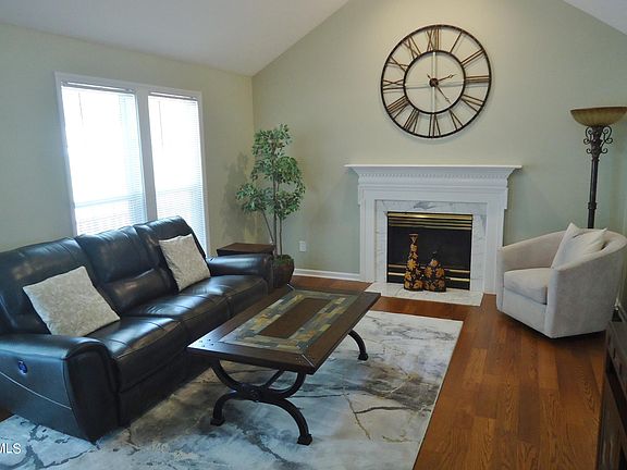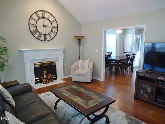 MOVE-IN READY 3BR/2BA HOME! Rocking chair Covered Front Porch and Huge Deck looking out to private back yard! Light and bright Living Room with Cathedral Ceiling and Gas-Log Fireplace - Beautiful hand scraped wood flooring throughout - Large Eat-in Kitchen with Granite Counters, Tile Backsplash, Pantry and Bay Window - Stainless Steel Appliances - Primary Suite has 2 Closets and Dbl Vanity - Hall Bath has relaxing Jetted Tub - Large Storage Shed 12x10 and Fire Pit - Located on a Short, Quiet Cul de Sac Street - NO CITY TAXES - Convenient to 540, parks and greenways - NEW ROOF 2019 - This home is very well maintained... hurry!