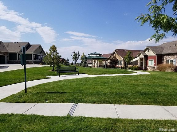 Don't miss this Beautiful Bravo Patio Home! Gorgeous hard wood floors in Great Room, Dining Room, Kitchen and Hallways. One of, if not the Best Location in complex. View of Greenbelt with Gazebo and Mountains (on a clear day). Driveway is accessible directly from street with no curb. Close to the playground at Great Plains Park. Unit is like new. Laundry room has cabinets added by owner and includes the washer and dryer. Nine foot ceilings throughout. There are no steps into the home. Large Master features huge walk-in closet, upgraded all glass shower door, dual sinks. Both Bedrooms and Living Room have newer Ceiling Fans. Great Open Kitchen with Island looking into Great room and Dining. Light and Bright. Oversized Two Car Garage with plenty of room for storage. Community offers a clubhouse with fitness center and outdoor pool. Southlands Mall is close by and easy to get to DIA. You will love this home.