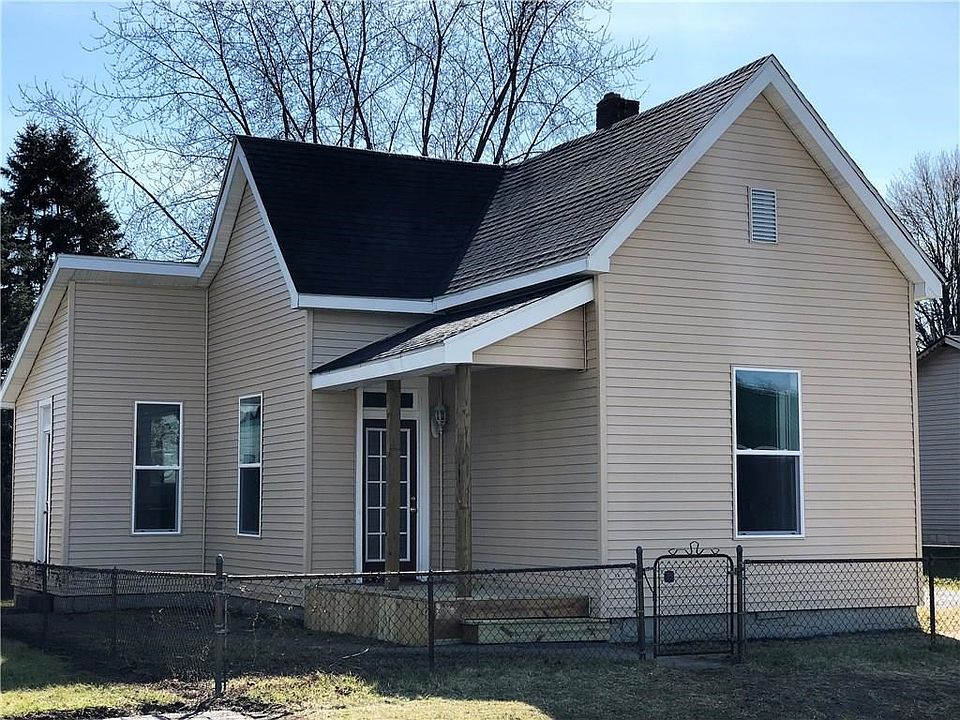 Dramatic Transformation! This house becomes a brand new home! Starting with a new deck porch and front door. New vinyl siding, soffits and windows. Complete bathroom upgrade with new tub. Upgraded kitchen with new cabinetry, counter top, sink and fixtures. Every room has new flooring. Check out the glass door knobs. Whole house has new electric and plumbing including water heater. Brand new, gas furnace, air conditioner hooked up to new air ducts. Detached, vinyl sided garage, new garage overhead door with updated driveway. Chain link fence surrounds the entire property - front and back. Very affordable, maintenance free living.