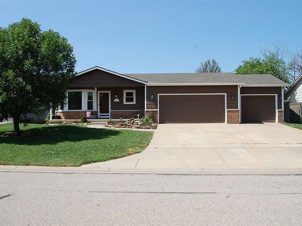NEW! NEW! NEW! New CARPET in the main floor bedrooms and stairway. New ROOF and New GUTTERING. Almost New WINDOWS and SIDING. This is the perfect New HOME for your family. Located in the much desired Goddard School District, this 5 bedroom, 2 full bath home is move in ready. The main floor master bedroom has a walk-in closet and full bath. The basement is perfect for entertaining with a large family room that is great for movie or game night. The bathroom is plumbed and ready for the new owners to custom finish. The backyard is has a patio and sprinkler system. But wait...it get's better! The pull through over-sized 3 (YES 3) car garage has a full set of built in cabinets for the handy man or woman of the house. HURRY, HURRY, HURRY! Make this your NEW home today.