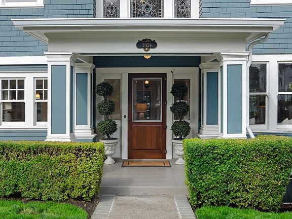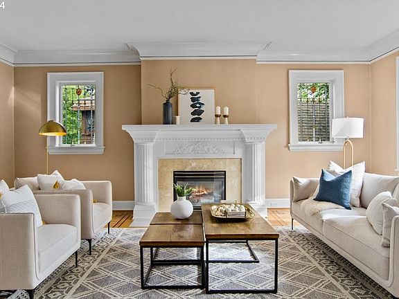 This grand residence, situated in the coveted Portland Heights grid neighborhood, showcases stunning architecture and timeless charm. Upon entering, you are welcomed by exquisite period millwork and intricate leaded and stained-glass windows. Rich wood floors, beautifully accented with walnut inlays throughout the main level, enhance the home’s classic design with a touch of warmth and sophistication. The spacious living room, anchored by a fireplace, flows effortlessly into a sunlit office or sunroom. Adjacent to the living room, the formal dining room features a striking box beam ceiling, adding to the room’s architectural beauty. The dining room conveniently opens into a butler’s pantry, facilitating seamless entertaining. The expansive kitchen, complete with a charming breakfast room, adds to the home’s inviting and functional atmosphere. This rare gem embodies timeless craftsmanship and sophisticated living, set in one of Portland's most prestigious neighborhoods, close to parks, trails, multiple hospitals, NW Portland and the city. [Home Energy Score = 1. HES Report at https://rpt.greenbuildingregistry.com/hes/OR10233132]
