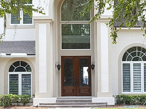 Come and see this 7BD/4BA/and 2 half BA custom Doctors Lake front home in scenic gated Pace Island. This outstanding 5,200+ sq. ft. Fleming Island home has space enough for everyone! This outstanding home has had a recent thorough renovation which includes a new roof,hardwood floors, carpet,windows, and much more!! The master and 3 bedrooms are on the first floor. Three more bedrooms, along w/ a large living area, a study area and media room w/ wet bar are on the second floor. The family room has 25 ft. ceilings and spectacular sunset views. There is a lanai and patio as well as a second floor balcony. The property has a dock, covered boat slip and lift for a boat and jet ski. There is an oversized 3 car garage. Pace Island is Fleming Island's only full time guarded gated community.