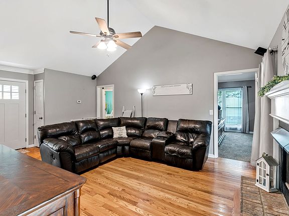 Charming Home with Modern Upgrades & Outdoor Oasis! Welcome to this beautifully updated home that blends modern comfort with country charm, nestled in a quiet, friendly neighborhood. Step into a spacious dining room featuring elegant crown molding, perfect for family dinners or hosting guests. The full kitchen was completely remodeled in 2021 and boasts sleek stainless steel appliances that stay with the home. Enjoy peace of mind with new windows, a new roof, and a new AC unit, ensuring efficiency and comfort year-round. The primary bedroom and living room feature soaring cathedral ceilings, and the living room is wired for surround sound—ideal for movie nights or entertaining. Outdoors, relax on a massive new pool deck surrounding an above-ground pool with a 2-year-old liner. The large backyard includes a cozy fire pit and backs up to a scenic creek, creating the perfect atmosphere for gatherings and relaxation. For your practical needs, the property includes a 16x91 concrete pad with a 30amp hookup—perfect for parking a camper or RV. The one-car attached garage features ample built-in storage with shelves and cabinets that stay, offering convenience and organization. Additional features include a barn and chicken coop—both negotiable—as well as a washer and dryer. Don’t miss this one-of-a-kind property that truly has it all—comfort, space, and peace of mind in a quiet neighborhood.