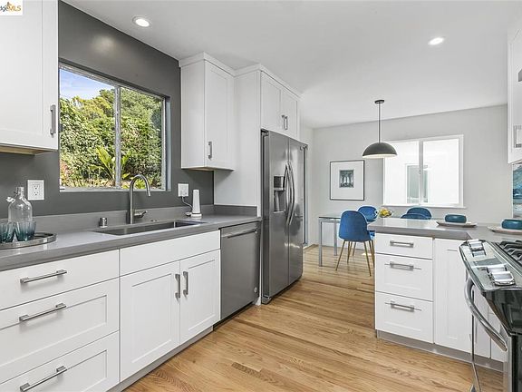 Beautifully renovated tri-level custom home with panoramic views of the city, bay and two bridges. New kitchen with all-new stainless steel appliances, new countertops and cabinets. Updated bathrooms with new flooring and vanities. Extensive decks with views on all three levels. Potential In-law unit. Right across the street from Canyon Trail Park and less than a 15-minute walk to the El Cerrtio del Norte BART station. Close to shops, restuarants, schools and freeway access. Zoned for Madera Elementary School.